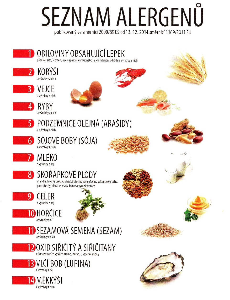 Alergeny obsažené v pokrmech k dostání u obsluhy